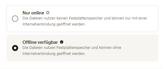 Ich habe einige Verzeichnisse und Dateien darin, die ich immer auch offline brauche, um unterwegs daran zu arbeiten. Entsprechend sind sie bei der selektiven Synchronisation mit drin und die Option "Offline verfügbar" ist ausgewählt.