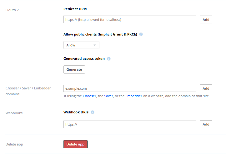 const dbx = new Dropbox.Dropbox({ accessToken: '' });