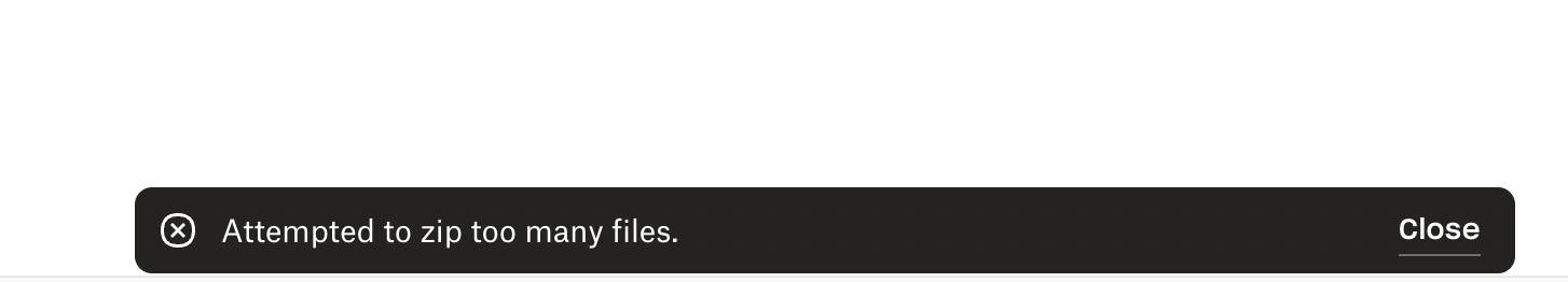 I was under the impression that I could restore my whole backup with one click when switching to a new MacBook. It turns out, after many bugs (such as only synching one folder, and not giving me options for the others), it is not possible. I also tried downloading the folders individually - and I am met with the error " Attempted to zip too many files" particularly when trying to download and restore my Lightroom Catalog folder.