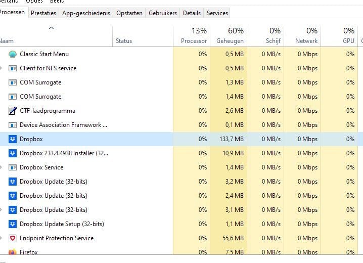 When I try to close the installer window, it ask me to confirm I want to cancel the installation. When I confirm cancellation finishes after a few minutes and the window closes . However all dropbox processes remain active in the task manager: