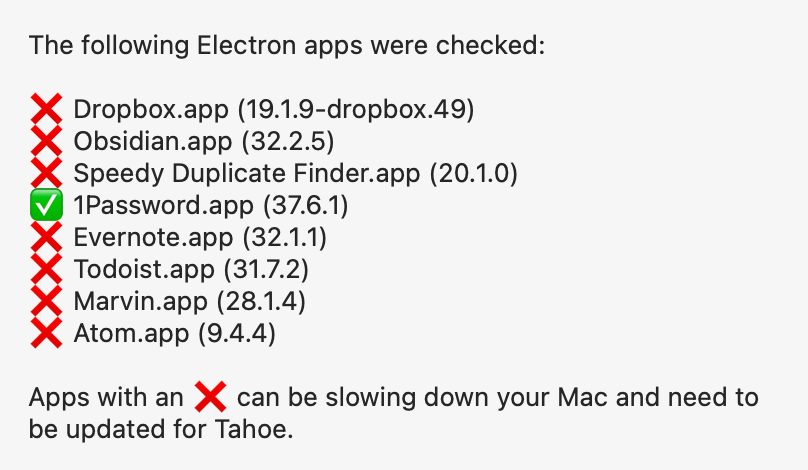 The Mac community has been made aware that apps making use of the electron framework leading to significant slowdowns in Mac OS 26 (Tahoe).