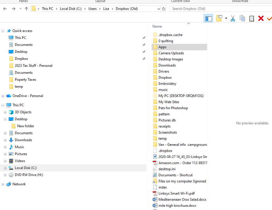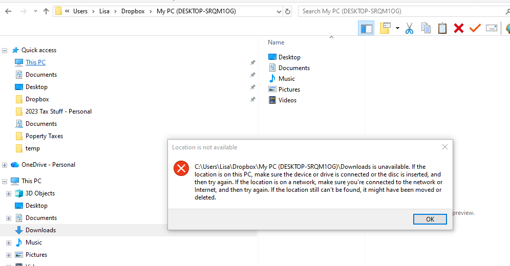 The Old folder seems to have my stuff. The Drobox folder only has a dowloads folder and I get a message saying location is not available. Neither folder has a Client folder.
