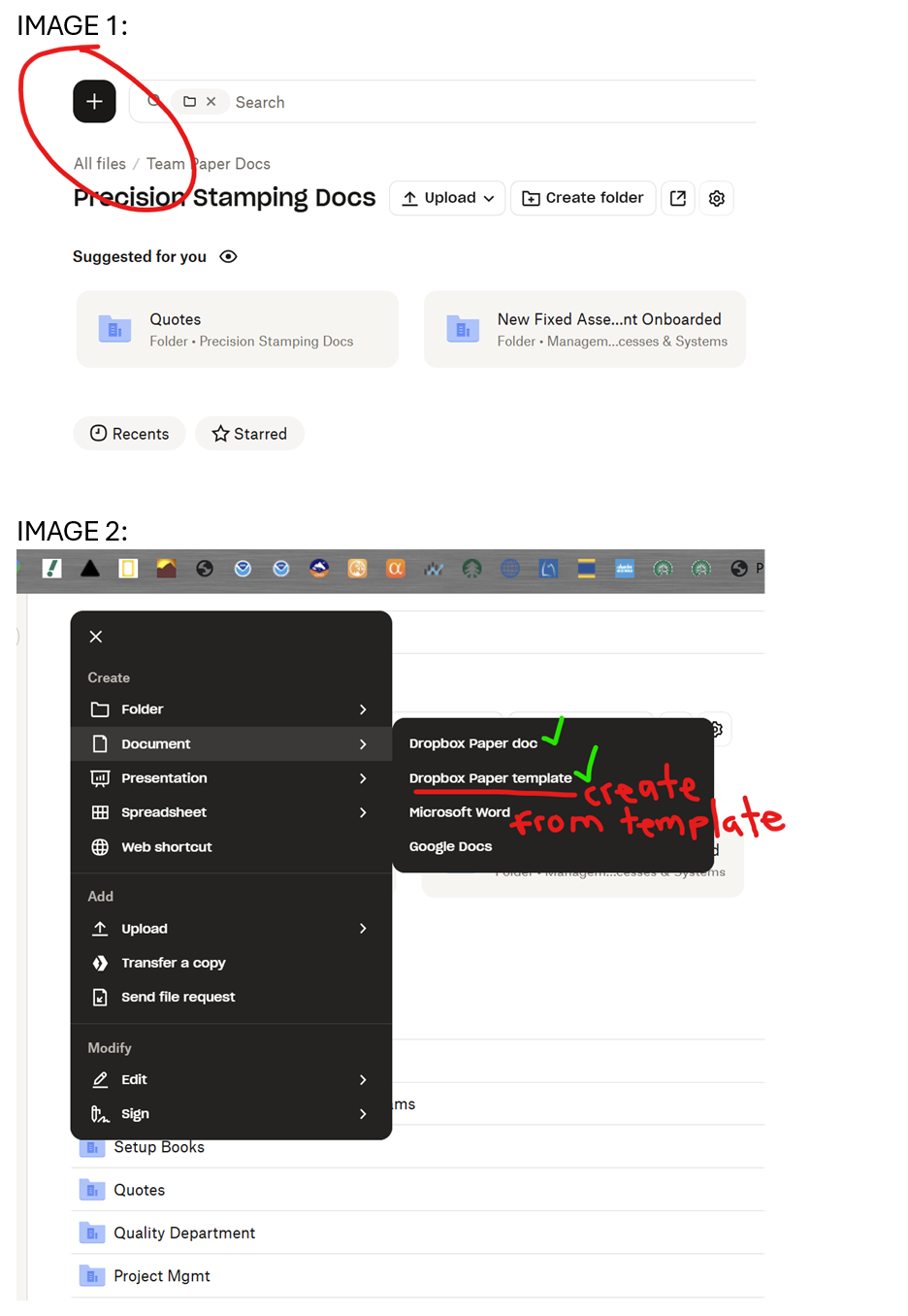 Currently, a user can create a new (blank) Paper doc and create a new Paper template by selecting the white "+" (black background) next to the search field. It would make sense to add functionality allowing a user to create a Paper doc from/with an existing template here as well. With the recent changes to Paper, templates are not nearly as valuable, and this would restore some of the value as well as be a piece of very complementary functionality to the actions already present.