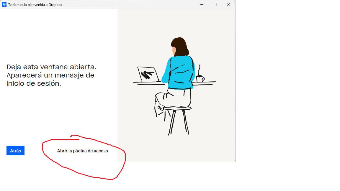 Al comenzar el proceso, esto es al bajar la driver para instalar la aplicación en el PC de escritorio y al abrirlo, el sistema pide dirigirme a "abrir página de acceso",