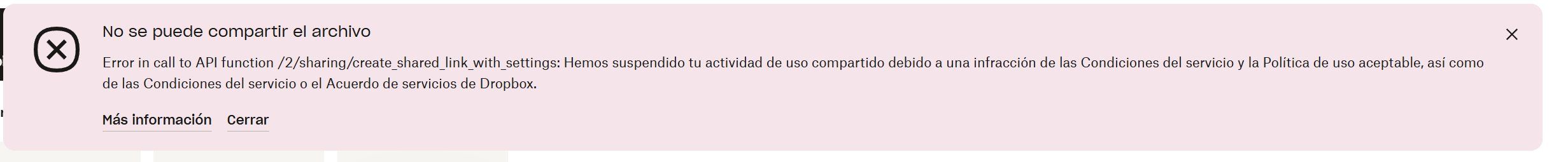 Parece ser que tengo una restricción en mi cuenta. Tengo Dropbox desde que salió, hace muchísimos años, y lo he usado mucho.