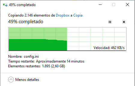 Si se copia esa carpeta desde dropbox hacia el mismo disco pero fuera de dropbox y desde esa copia se procede a copiar hacia otro lado, entonces si que hace correcto el calculo inicial de tamaño de ficheros.