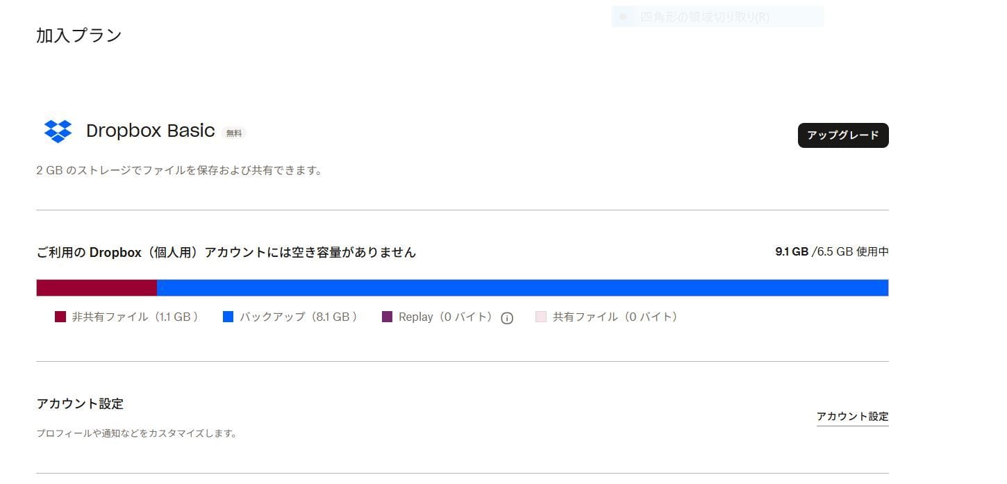 Dropboxに保存しているファイルを減らしても、メッセージは消えません。使用中ストレージを確認したら1.05GBです。Dropboxアプリを開いて容量を確認しても、バックアップフォルダが表示されなかったので8GBのファイルがどこにあるかどうしてエラーが出るか分かりませんでした。