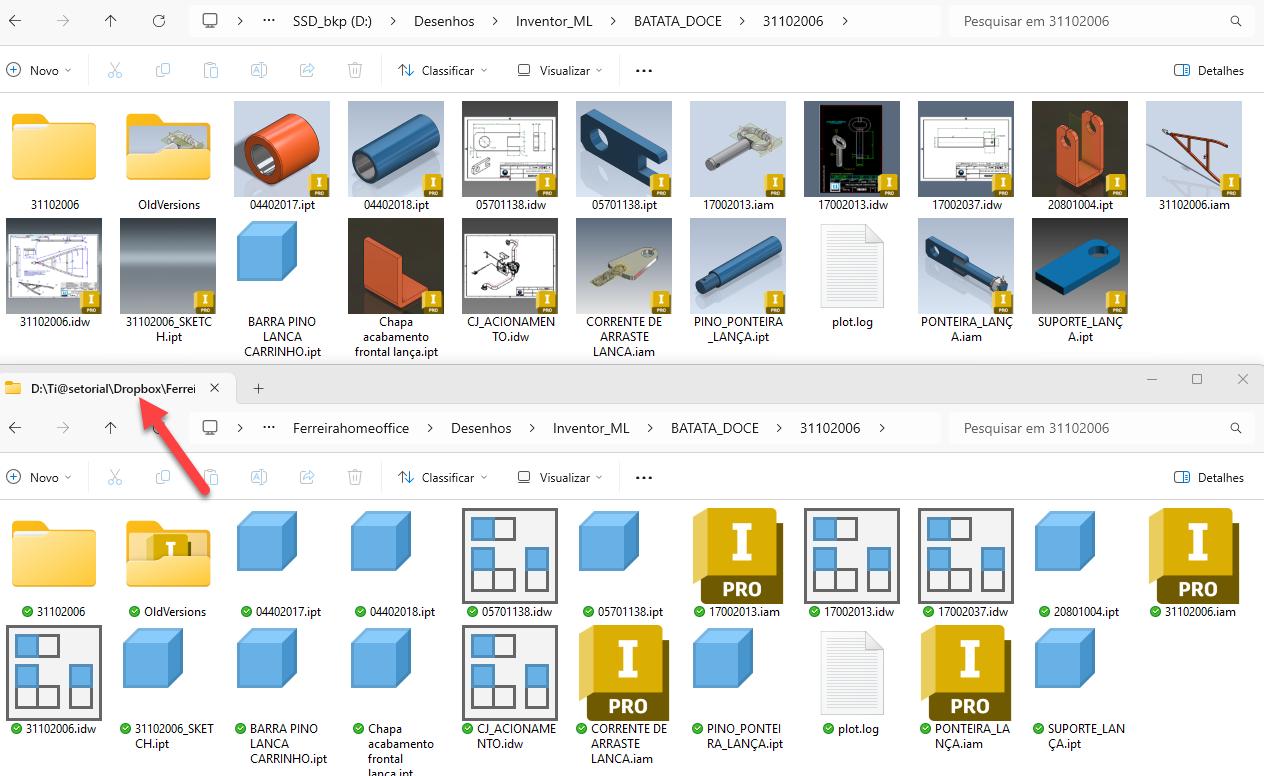 Estou enfrentando um problema bem chato com a visualição de imagens dos ícones dos programas que uso da Autodesk, o Inventor e Autocad, pois as imagens do arquivos não são mostradas no Explorer do Windows, isso só acontece com arquivos dentro da pasta do Dropbox, ja tentei todos os recursos conhecidos pelos fóruns, mas sem sucesso, ja atualizei os software e nada, não trabalho com os arquivos apenas na nuvem, trabalhos com eles off-line, com copias no meu HD e mesmo assim não os visualizo, antes isso não acorria. Alguém pode me ajudar com isso, vou colocar uma imagem da mesma pasta dentro e fora do Dropbox para verem a diferença.